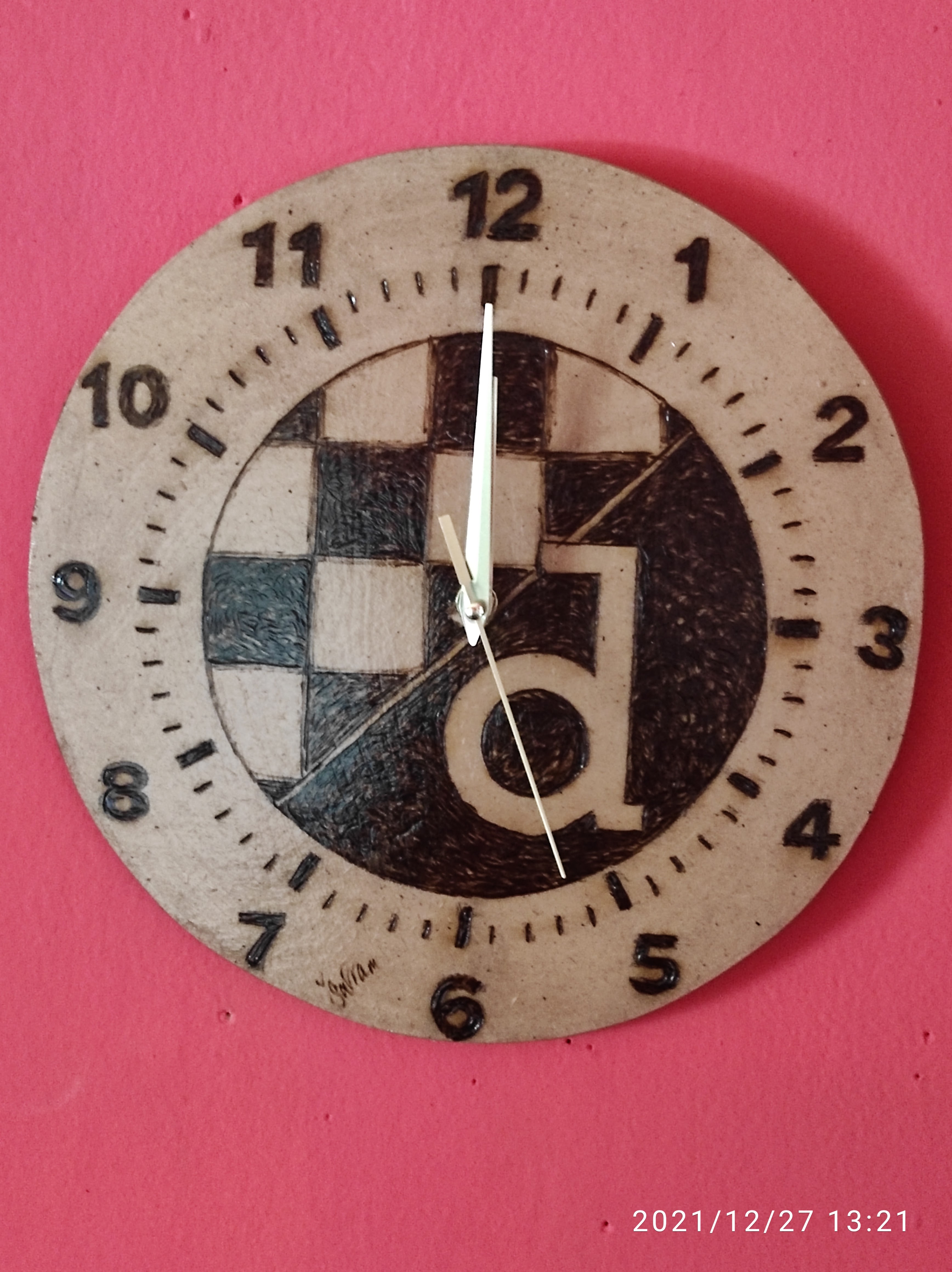 Gotov novi rad u pirografiji spaljena slika sa užarenom žicom dimenzije sata 30 cm,sa dodatkom boje.